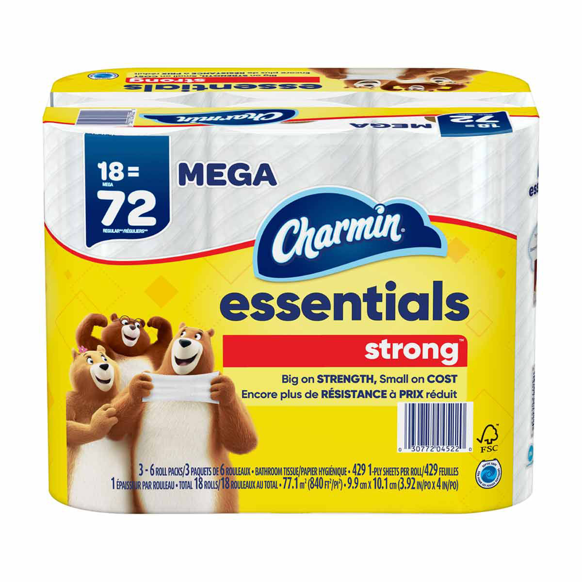 Charmin Essentials Strong Toilet Paper 18 Mega Rolls, 429 sheets per roll