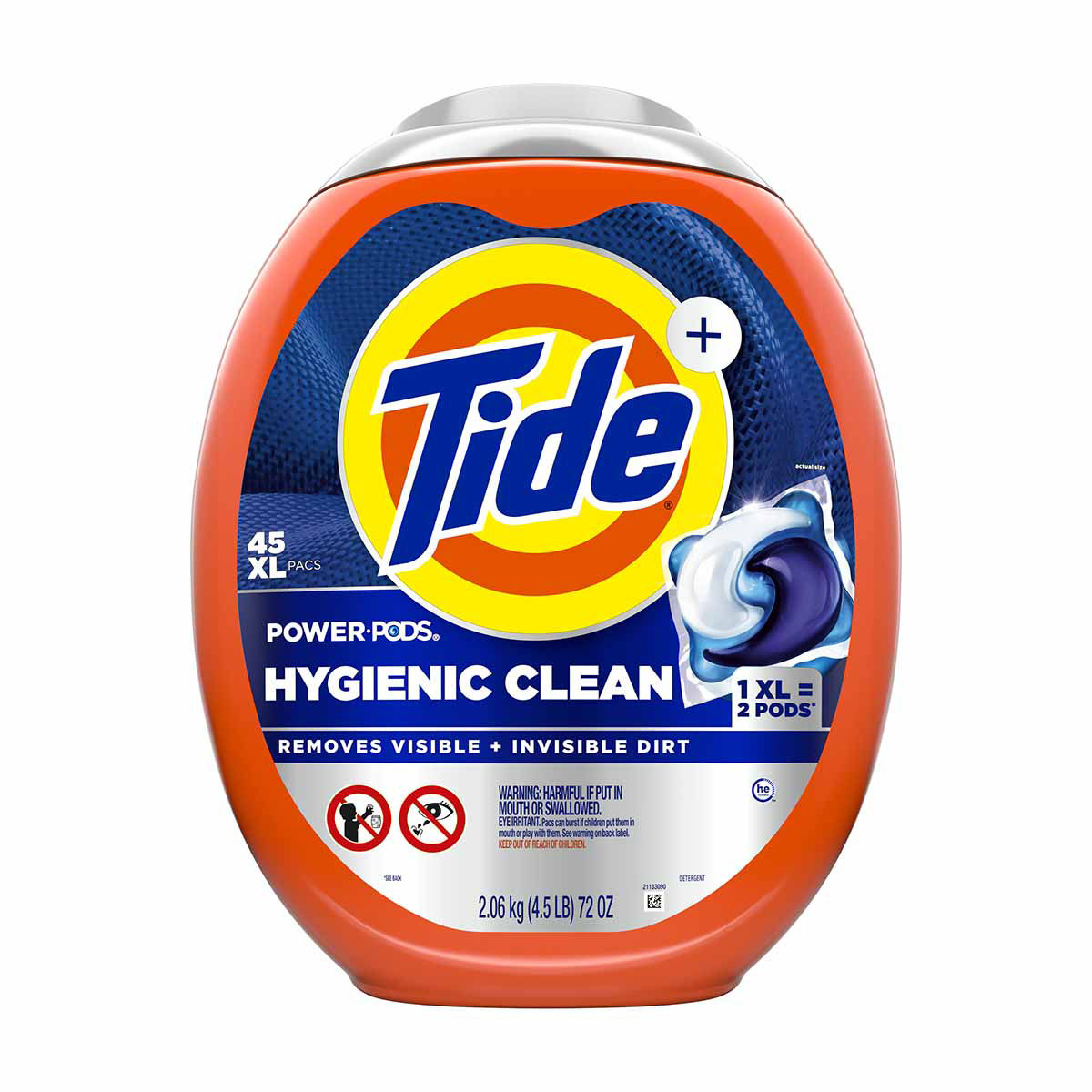 Tide Hygienic Clean Power PODS Laundry Detergent Pacs, Original Scent, 45 Count, Removes Visible and Invisible Dirt, laundry soap detergent pacs