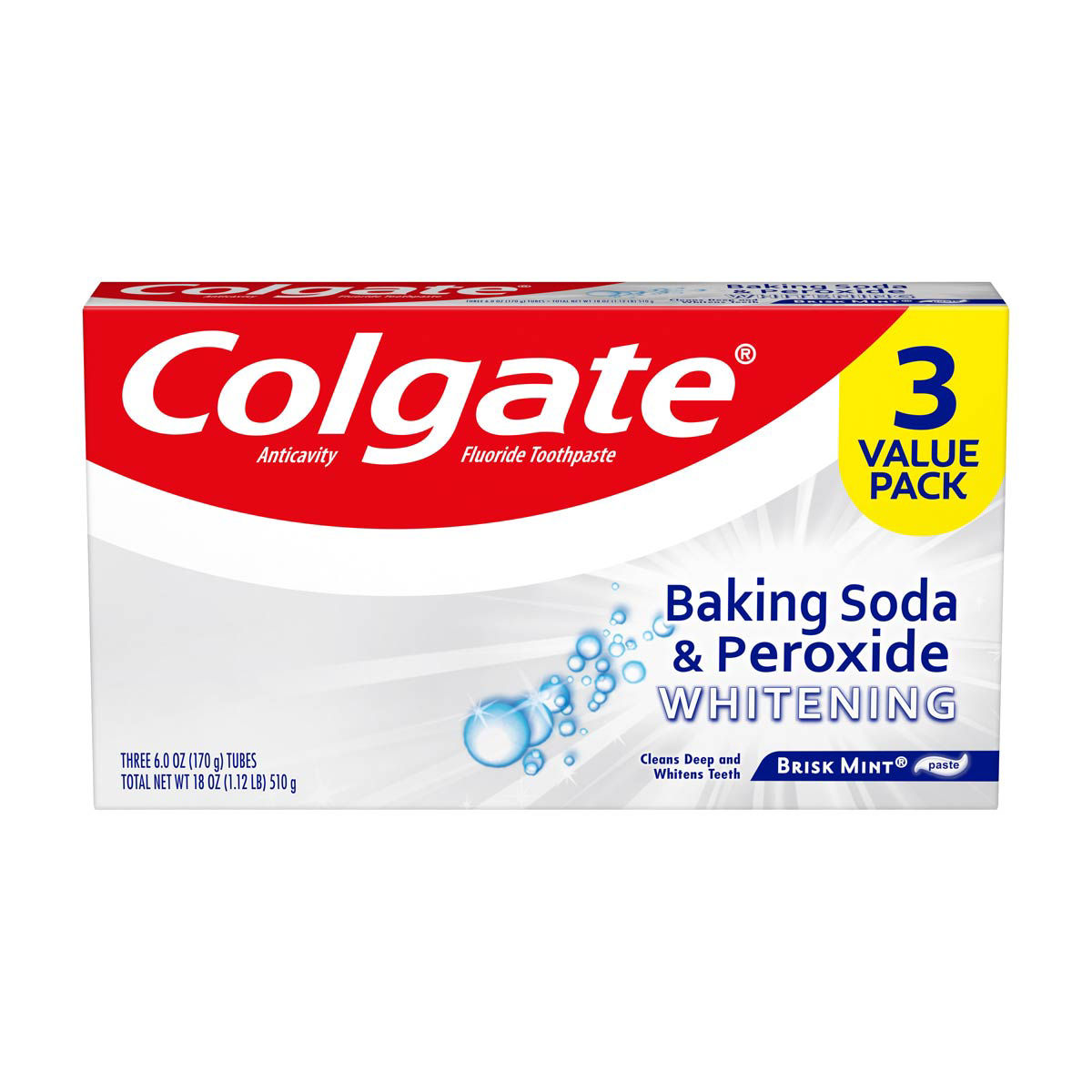 Colgate Baking Soda & Peroxide Whitening Toothpaste, Brisk Mint, 6 oz - 3 pk