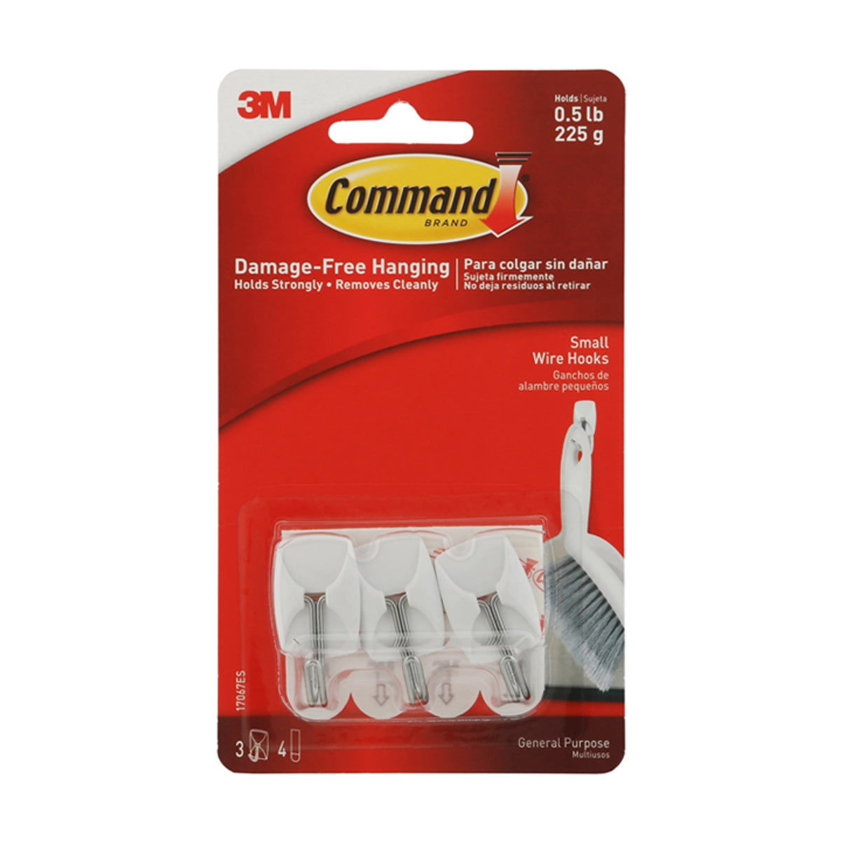 Command Small Wire Hooks, 3 Hooks, 4 Strips