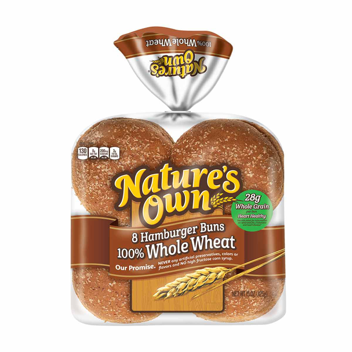 Nature's Own 100% Whole Wheat Hamburger Buns, 8 ct