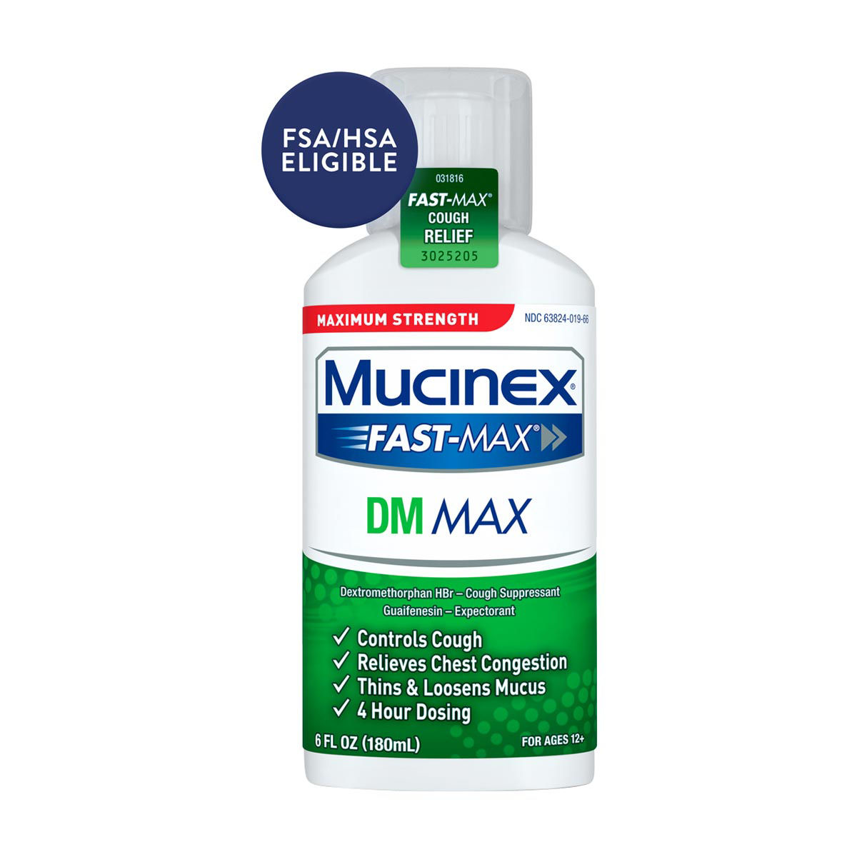 Maximum Strength Mucinex Fast-Max DM Max Liquid, 6 fl oz Controls Cough, Relieves Chest Congestion, Thins & Loosens Mucus