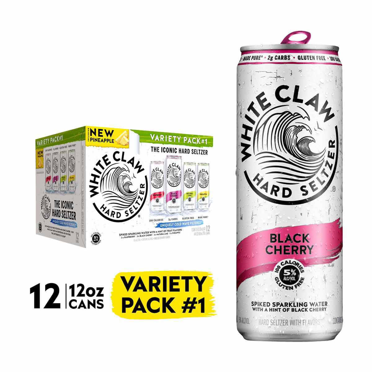 White Claw Variety Pack Assorted Hard Seltzer Slim Can, 12 fl oz - 12 ct