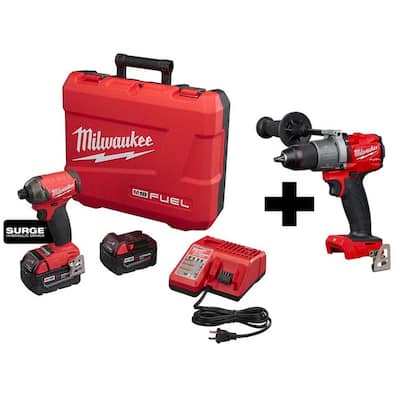 Milwaukee M18 FUEL SURGE 18V Lithium-Ion Brushless Cordless 1/4 in. Hex Impact Driver Kit W/ M18 FUEL Hammer Drill
