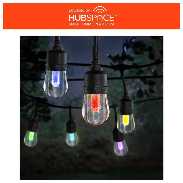 Hampton Bay Indoor/Outdoor 12-Light 24 ft. Smart Plug-in Edison Bulb RGBW Color Changing LED String Light Powered by Hubspace