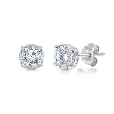 0.95 CT. T.W. Diamond Stud Earrings in 14K White Gold:- Round