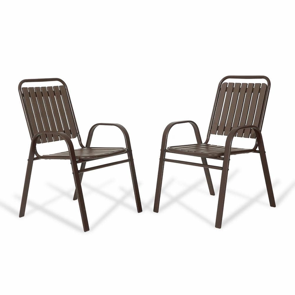 INNUMIA Stackable Brown Metal Outdoor Dining Chair Set of 2 w/PP Backrest and Seat
