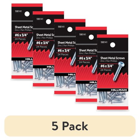 (5 pack) Hillman Sheet Metal Screws, #6 x 3/4", Pan Phillips, Zinc Plated, Steel, Pack of 24
