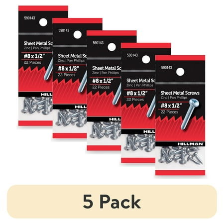 (5 pack) Hillman Sheet Metal Screws, #8 x 1/2", Pan Phillips, Zinc Plated, Steel, Pack of 22