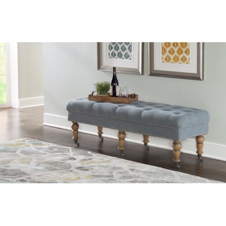 50" Isabelle Traditional Linen Tufted Upholstered Nail head Wheeled Bench Blue - Linon