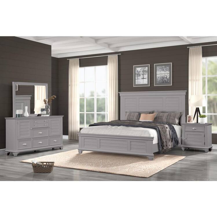 NEW CLASSIC HOME FURNISHINGS New Classic Furniture Jamestown 4-Piece Gray King Wood Bedroom Set (B/Dr/Mr/Ns)