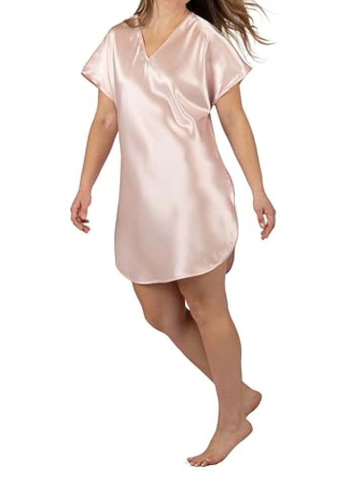 Shadowline Simply Women's Charming Satin Sleepshirt, Blush, Medium