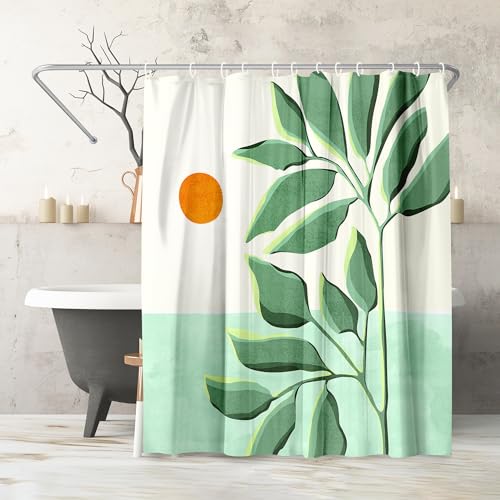 Americanflat 71x74 Boho Shower Curtain - Water-Resistant Long Shower Curtain with Durable Metal Grommets and 12 Hooks - 100% Polyester - Ivory, Burnt Orange and Green Bathroom Curtains