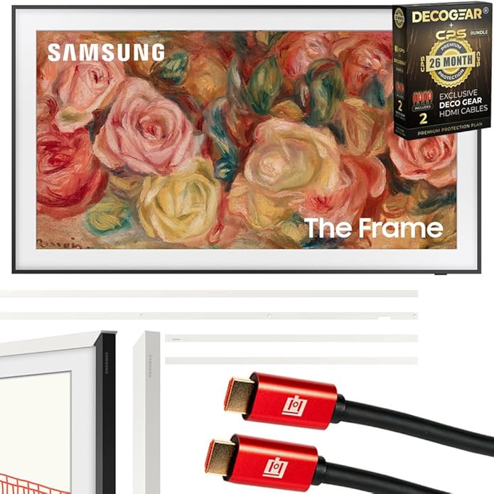 SAMSUNG QN75LS03D 75 inch The Frame QLED 4K Smart TV 2024 Bundle w/White Bezel & Deco Gear 4K HDMI 2.0 Cable x2 & CPS Exclusive 26 Month Protection Pack (BEACH-CPS-263000) |Official Partner|