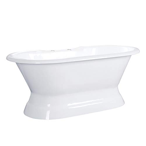 Kingston Brass VCT7D663024 Aqua Eden 66 in. Cast Iron Pedestal Tub with 7 in. Faucet Drillings, White