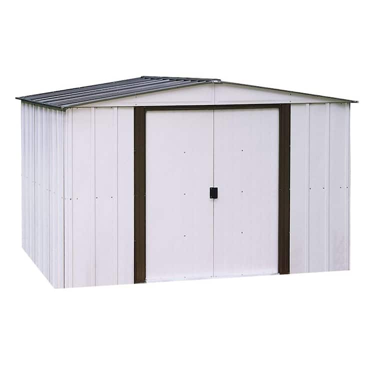 Arrow Newport 10 ft. W x 8 ft. D 2-Tone Eggshell and Coffee Galvanized Metal Shed 74 sq.ft sq. ft. with Sliding Lockable Doors