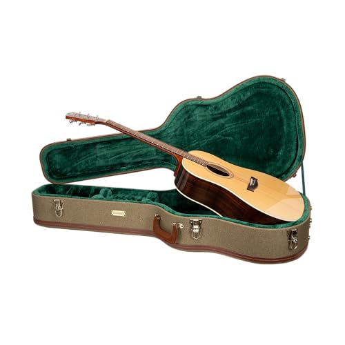 Crossrock Master Series Dreadnought Acoustic Guitar Case for Gibson J-45 / Martin D-Style | Olive Green Eco Tweed Fabric, Re-Engineered Shell, Leather Handle & Forest Green Velvet Interior