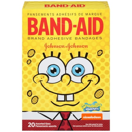 Band-Aid Brand Adhesive Bandages, SpongeBob SquarePants, for Kids, Assorted Sizes, 20 Count