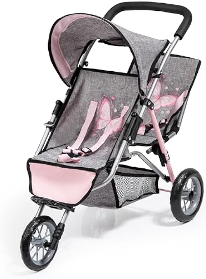 Bayer Design Dolls Twin 3 Wheel Jogger, Grey, Pink