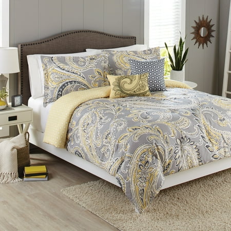 Better Homes & Gardens Full Paisley Yellow & Grey Comforter Set, 5 Piece