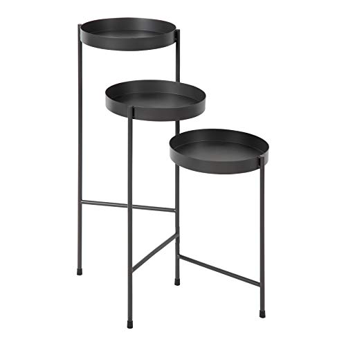 Kate and Laurel Finn Tri-Level Metal Plant Stand, Charcoal Gray, Decorative Hinged Tray Stand Display