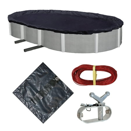 Pool Mate 18 x 33 ft Extra-Strength Blue Winter Oval Pool Cover for Above Ground Pools, 4 ft Overlap (22 x 37 ft Cover Size), Solid 12 x 12 Scrim, 3.7 oz/yd2, 15-Year Warranty, Style: 271833-4PMA
