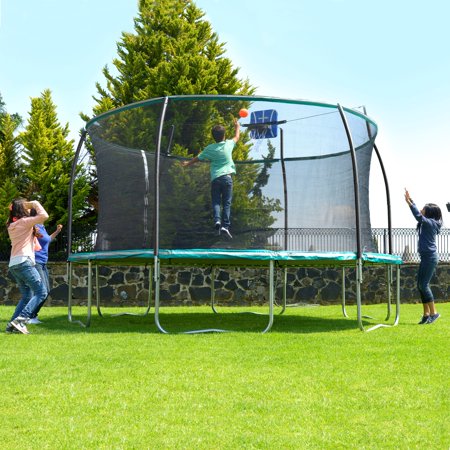 Bounce Pro 14' Trampoline, Basketball Hoop, Steelflex Enclosure, Blue (Box 1 of 2) [47222679]