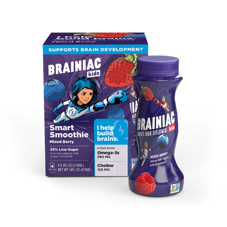 Brainiac® Kids Mixed Berry Whole Milk Yogurt Drink with BrainPack®, 4 Ounce, 4 Pack