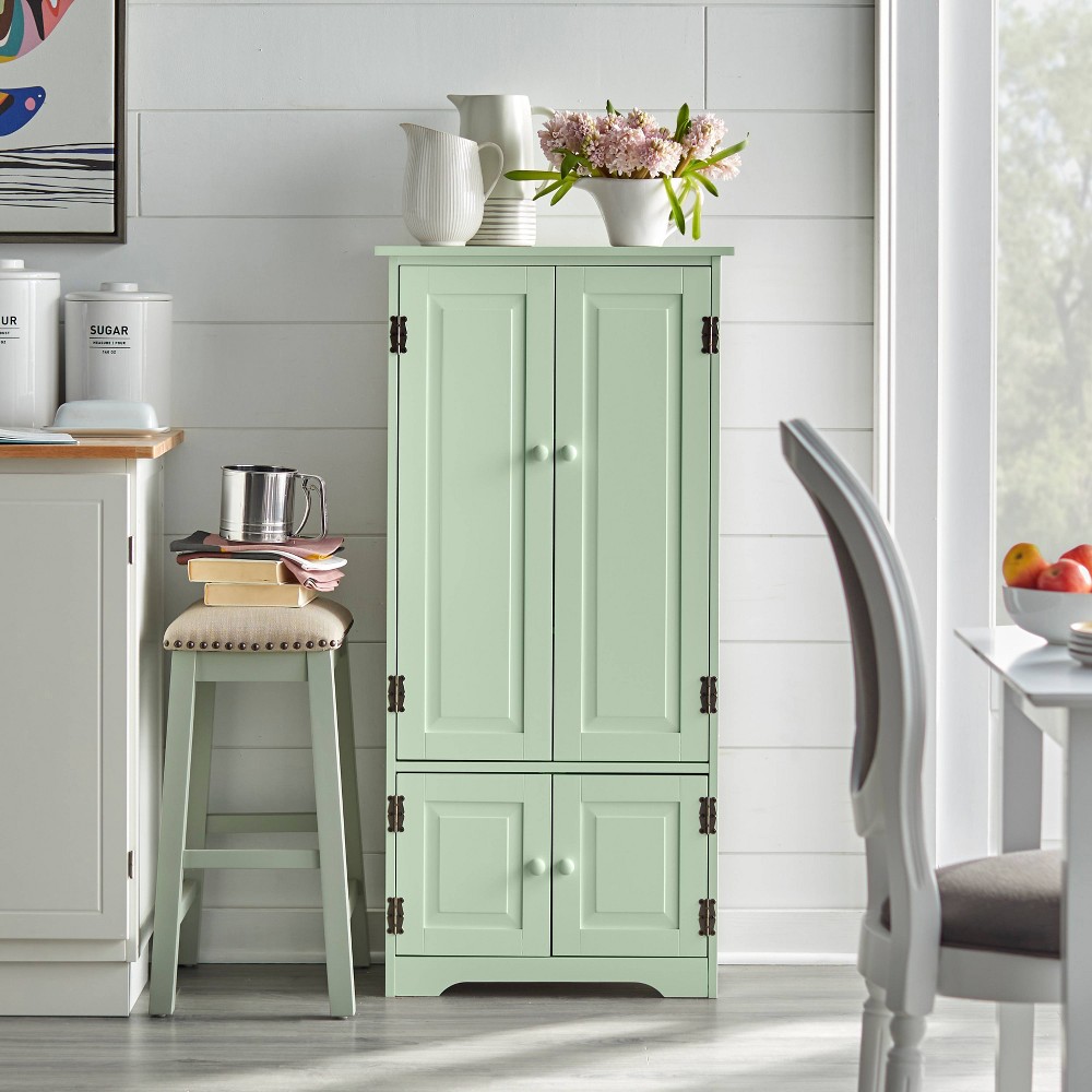 Buylateral Tall 4 Door Pantry Storage Cabinet Mint Green: Nautical Style, 4 Doors, 2 Shelves, MDF Wood