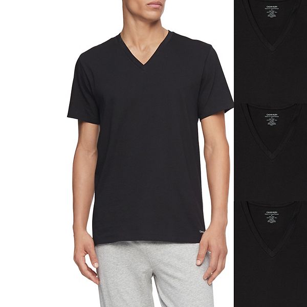 Calvin Klein Men's Cotton Classics Fit V-Neck T-Shirt -3 Pack, Black, XLarge