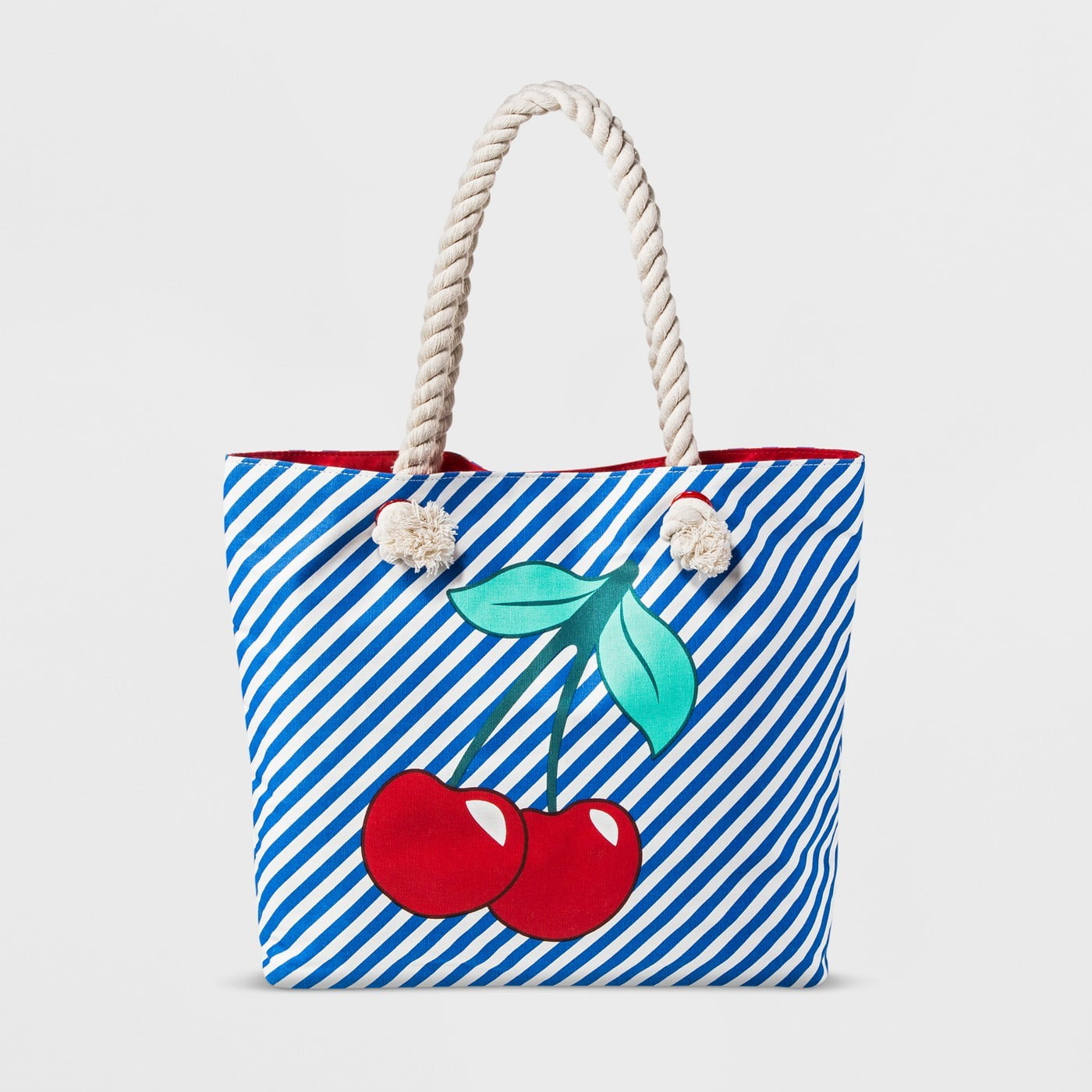 Cat & Jack Girls Cherry Tote Bag, Size: 15.5", Blue - Magnetic Closure