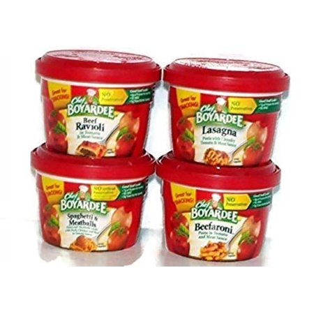 Chef Boyardee Variety Pack Microwavable Bowls 4 Pack (7.5 Oz. Each) - Beef Ravioli, Spaghetti & Meatballs, Beefaroni, Lasagna - Small Storage Space Friendly!