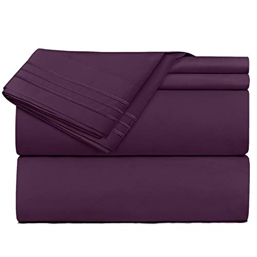Clara Clark Premier 1800 Series 4 Piece Sheet Set Deep Pocket Brushed Microfiber, Wrinkle, Fade & Stain Resistant, Twin-XL Size, Purple Eggplant