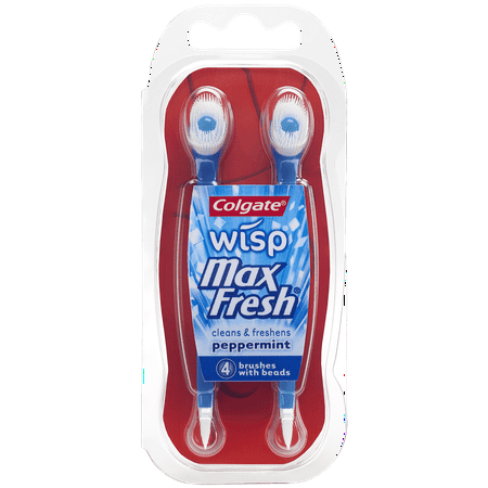 Colgate MaxFresh Wisp Disposable Mini Toothbrush, Peppermint - 4 Count