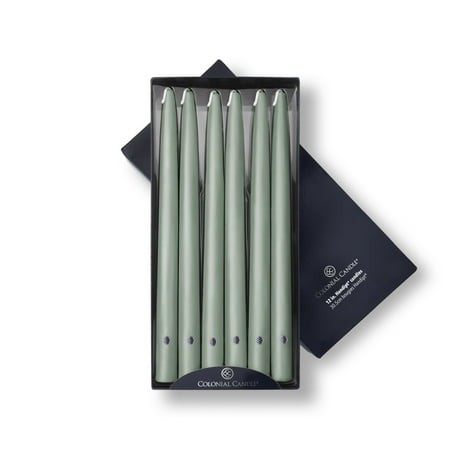 Colonial Candle Unscented Taper Candle - Colonial Green - 12 inch - Dripless - 10 hr Burn - Pack of 12