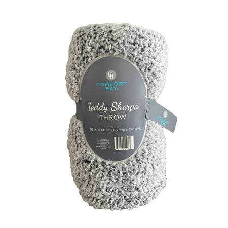 Comfort Bay Teddy Sherpa Throws, 50x60in Light Gray Sherpa