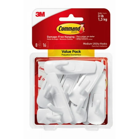 Command Medium Utility Hooks, White, Damage Free Organizing, 8 Hooks and 16 Command Strips