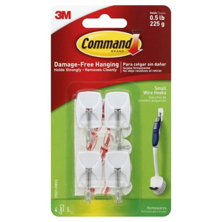 Command Small Wire Hooks 4/Pkg-White 4 Hooks & 5 Strips
