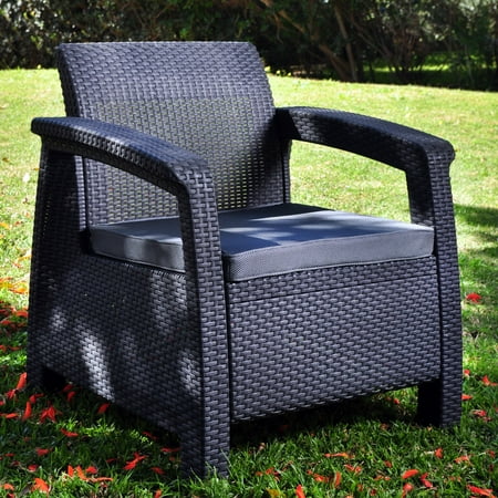 Keter Corfu Resin Wicker Armchair, Outdoor All Weather Patio Seat, Gray