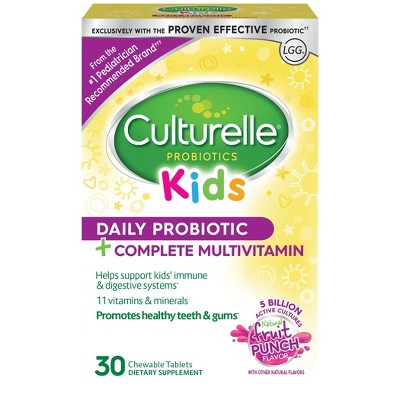 Culturelle Kids Daily Probiotic Plus Multivitamin Vegan Chewable for Oral Health, Digestive and Immune Support - Fruit Punch - 30ct