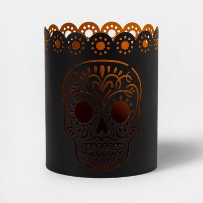 Día de Muertos Round Votive Candle Holder Orange/Black