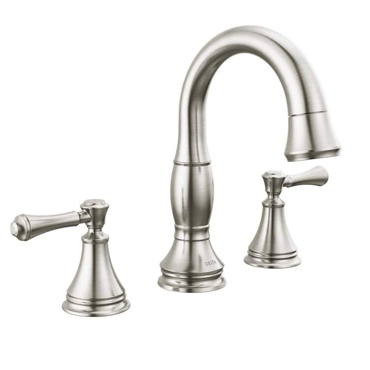 Delta Cassidy 8 in. Widespread Double-Handle Bathroom Faucet with Pull-Down Spout in Stainless