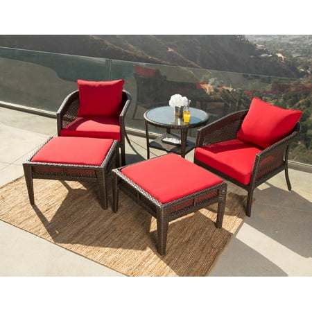 Devon & Claire Mykonos Sunbrella Red Outdoor Wicker Patio Chair Set, 5 Piece