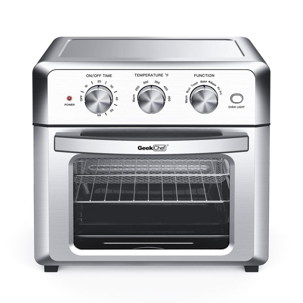 Boyel Living 19 Qt. Silver Stainless Steel Air Fryer Toaster Oven with Roast, Bake, Broil, Reheat, Accessories & Recipes Included