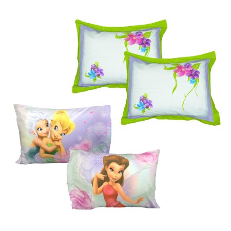 Disney 18082904 4pc Tinkerbell Pillowcase Sham Set Floral Frolic Bedding
