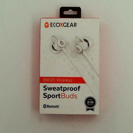 ECOXGEAR Sweat Proof Sport Buds with Microphone & Controls & Noise Cancellation - White