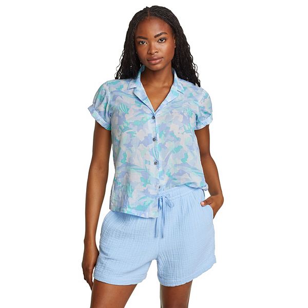 Eddie Bauer Short Sleeve Packable Camp Shirt Azure