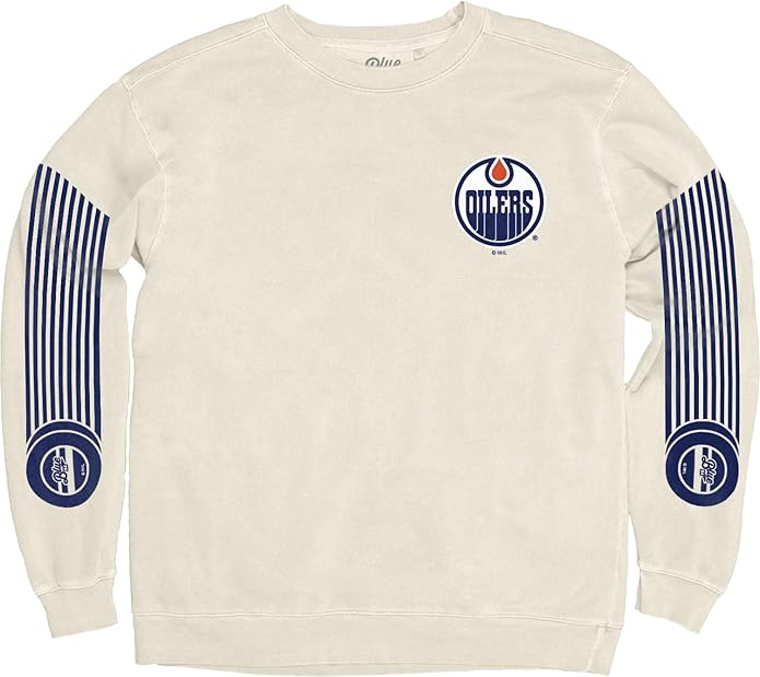 Edmonton Oilers NHL Officially Licensed Crewneck Sweatshirt Ringspun Ivory Sleeveshot, XX-Large