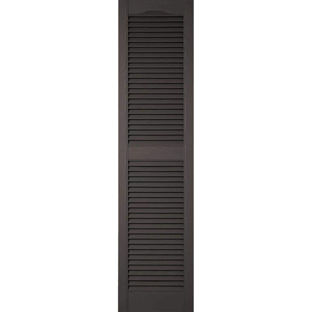 Ekena Millwork 12 in. x 64 in. Lifetime Vinyl Custom Cathedral Top Center Mullion Open Louvered Shutters Pair Tuxedo Grey