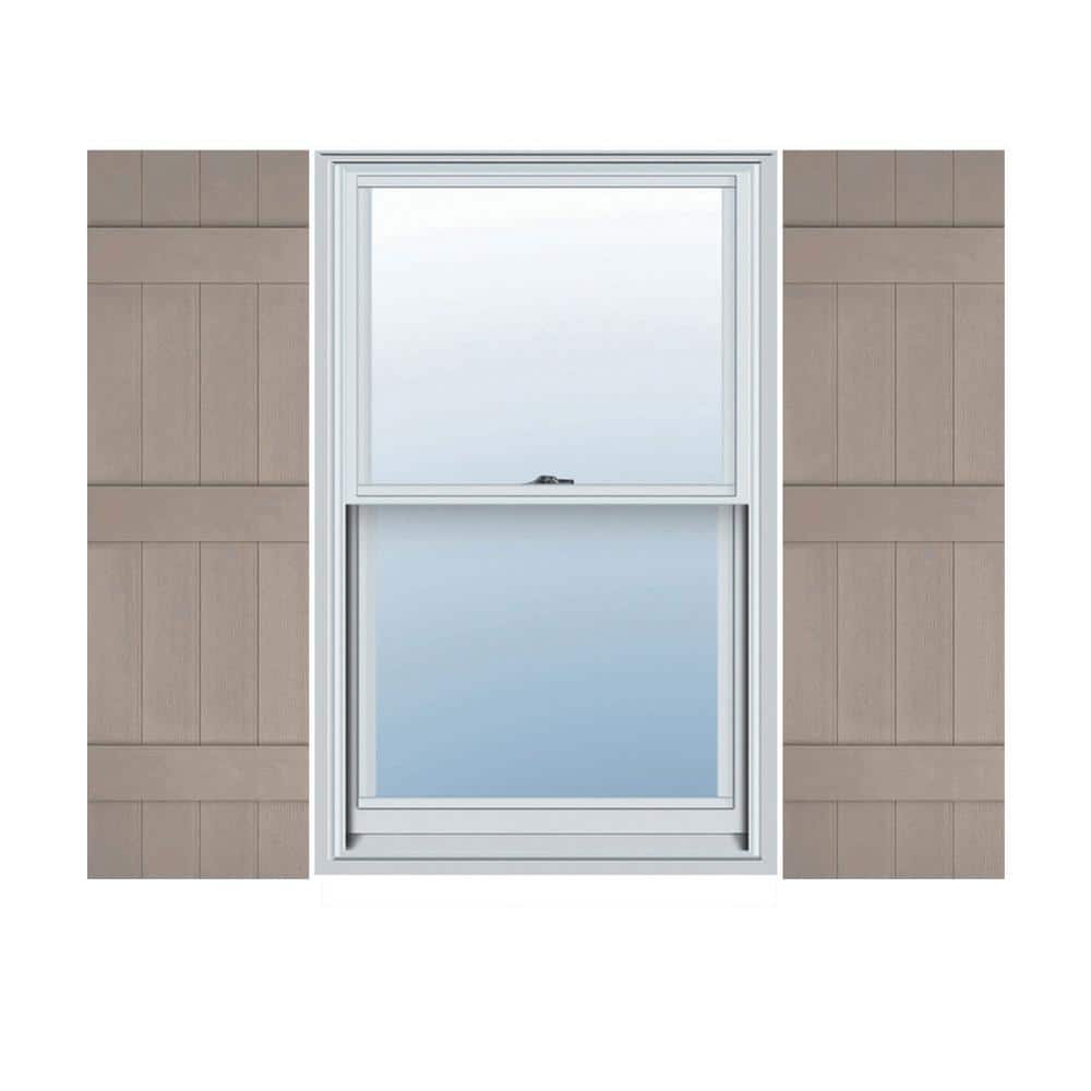 Ekena Millwork 14 in. x 64 in. Lifetime Vinyl Custom Four Board Joined Board and Batten Shutters Pair Clay